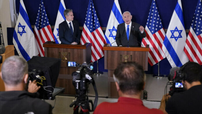 Într-o declaraţie comună cu premierul Netanyahu, Blinken a spus că Washingtonul lucrează îndeaproape cu Israelul pentru a asigura eliberarea persoanelor luate ostatice de Hamas.