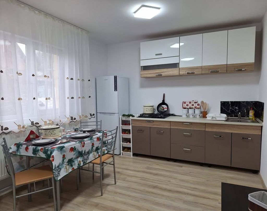 În poze aveți doua din cele 18 case construite în România pentru cazuri sociale, cu acest buget, mobilate și utilate…așa cum am putut dar totul nou. Case foarte bune pentru o familie cu 1-2 copii.