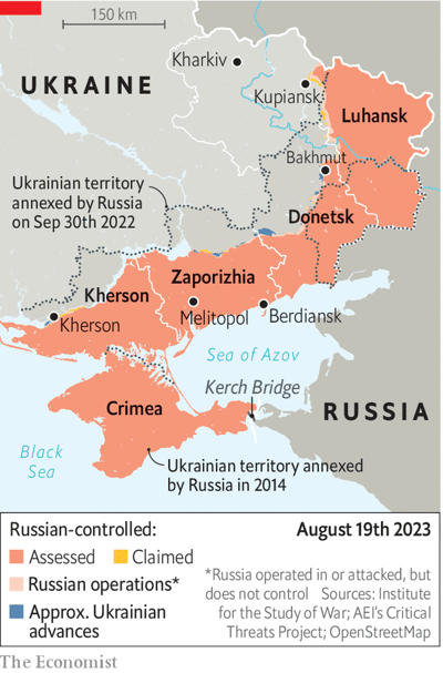 Starea sumbră se revarsă și în politica Ucrainei, care a fost în așteptare pe mare parte din timpul războiului. Zvonurile au circulat în tot timpul verii că administrația dlui Zelenski ar putea convoca alegeri parlamentare și prezidențiale anticipate. Logica este că este mai bine pentru el să caute realegerea în timp ce este încă un erou național, în loc să fie obligat să intre în negocieri de pace care ar putea cere un armistițiu nepopular sau concesiuni teritoriale majore. „Oricare ar fi alegerile, dacă au loc, ar fi un referendum asupra lui Zelenski”, spune Volodymyr Fesenko, un analist politic. „Cu excepția lui [comandantului-șef Valery] Zalujnîi, care este ocupat cu conducerea războiului, în prezent (Zelenski) nu are un concurent evident. Echipa lui Zelenski înțelege că acest lucru se poate schimba.”
