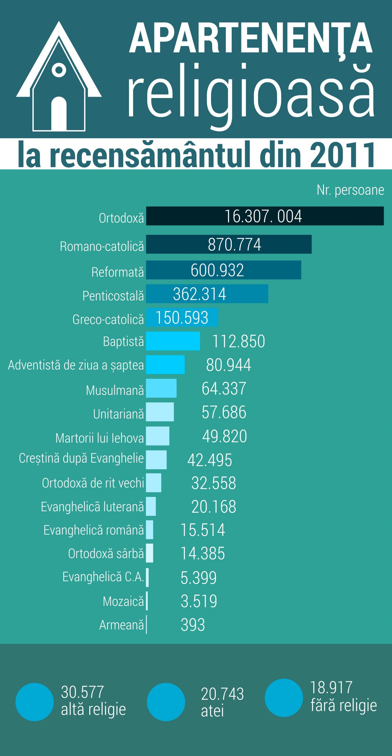 • dacă se reconfirmă faptul că România are la nivel european cel mai mic procent de persoane care se declară atee sau neafiliate, aproximativ 0,1-0,2%, fiind astfel țara europeană cu cel mai ridicat grad de afiliere religioasă (vezi aici tabloul complet al afilierii religioase).