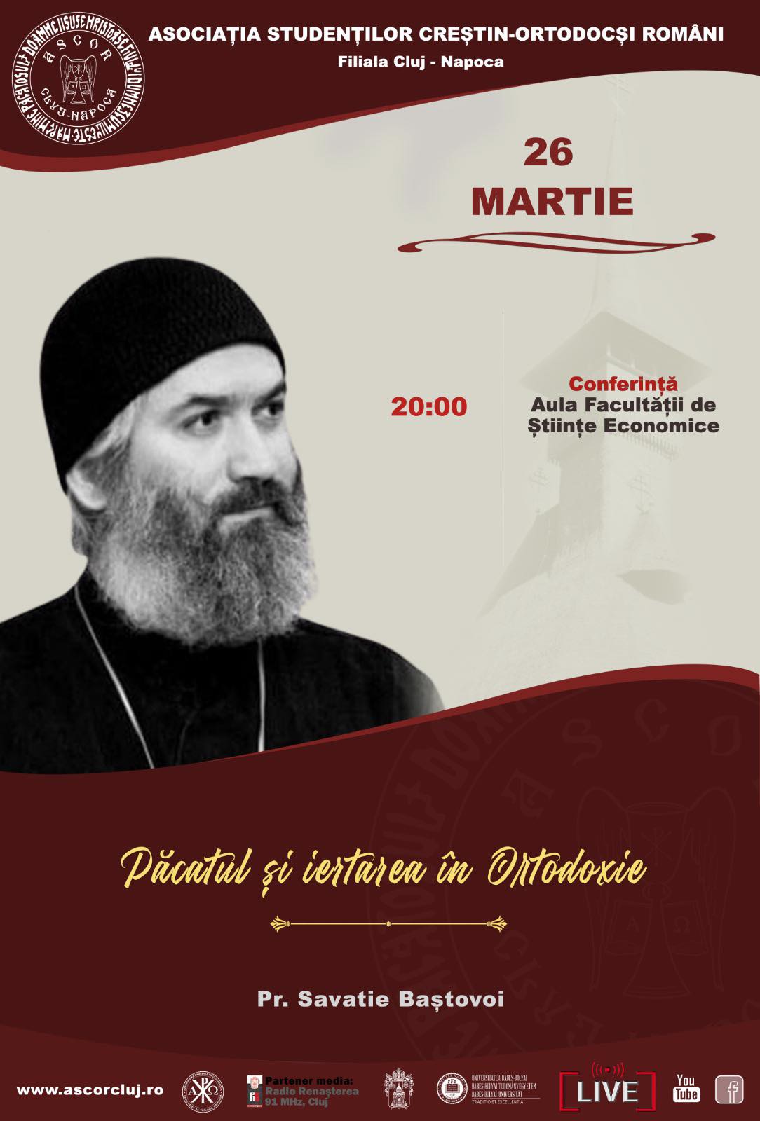 Asociația Studenților Creștin Ortodocși România, filiala Cluj-Napoca, a anulat conferința părintelui Savatie Baștovoi, care urma să se desfășoare pe 26 martie, în Aula Facultății de Științe Economice a UBB Cluj.
