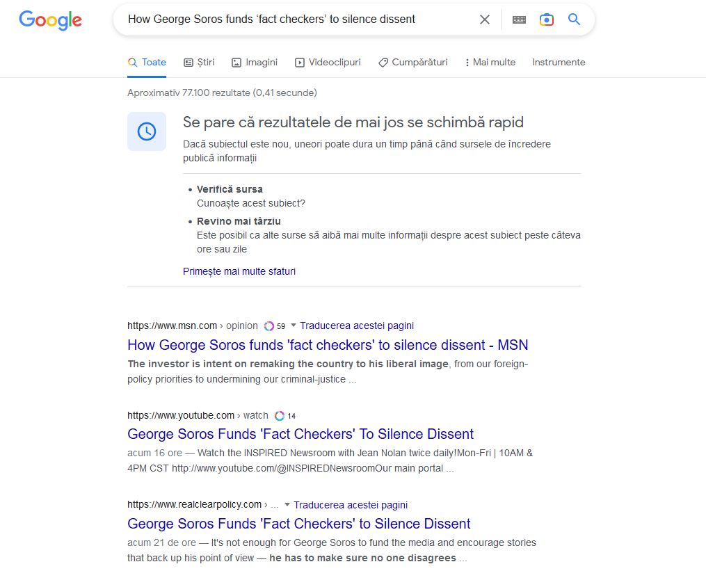 Un caz școală pentru complicitatea între Big Tech și Soroș este chiar articolul acesta. La peste 24 de ore de la publicare, motorul de căutare Google refuză să indice la rezultate articolul din New York Post.