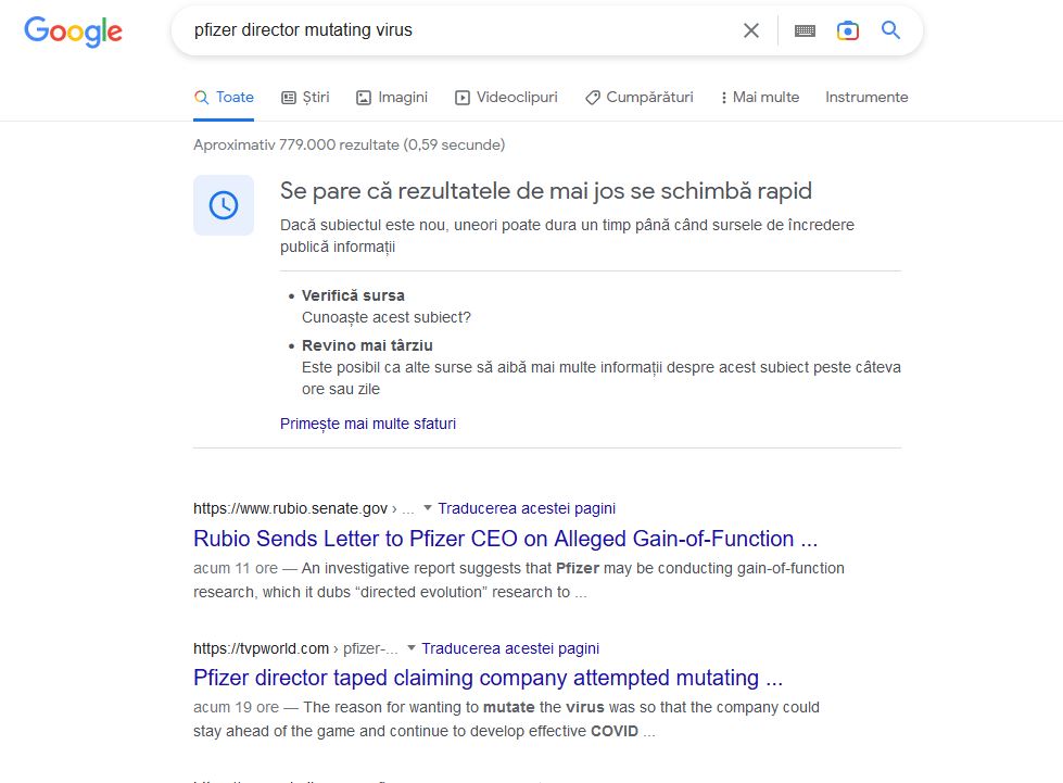 Același tip de cenzură funcționează și-n cazul mărturiei unui director Pfizer despre posibile tentative de mutație ale virusului C19 realizate chiar de companie. Deși subiectul este uriaș, strângând milioane de vizualizări pe Twitter, a fost ignorat de presa mainstream.