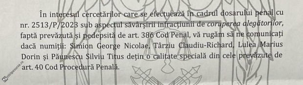 Președintele George Simion, șeful CNC al AUR Claudiu Târziu, prim-vicepreședintele Marius Lulea, sunt anchetați de către Poliția Ialomița pentru „infracțiunea de corupere a alegătorilor”, arată un document intrat în posesia siteului Știri pe Surse.