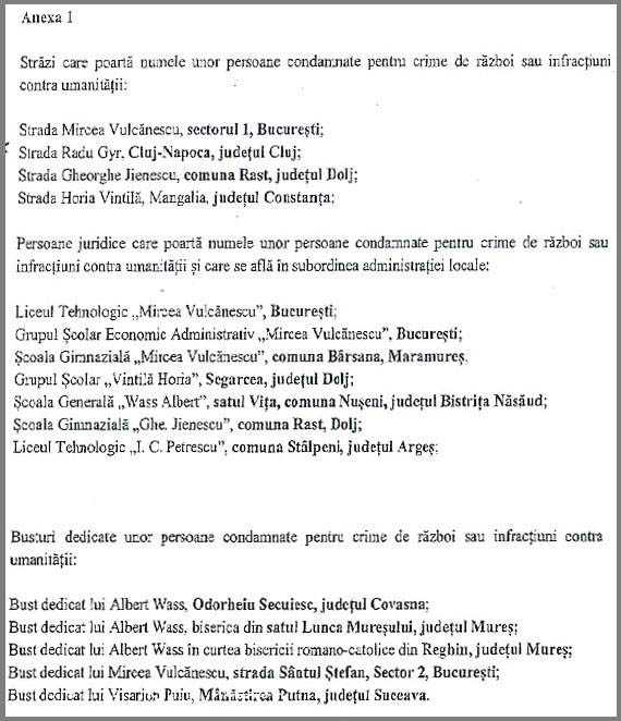 Aceeași procedură a fost aplicată de Institutul respectiv și-n 2017. Atunci, agenția din subordinea Guvernului României a trimis o sesizare către MAI, pe care se aflau mai multe nume de străzi și monumente care ar fi trebuit schimbate/demolate (foto jos).