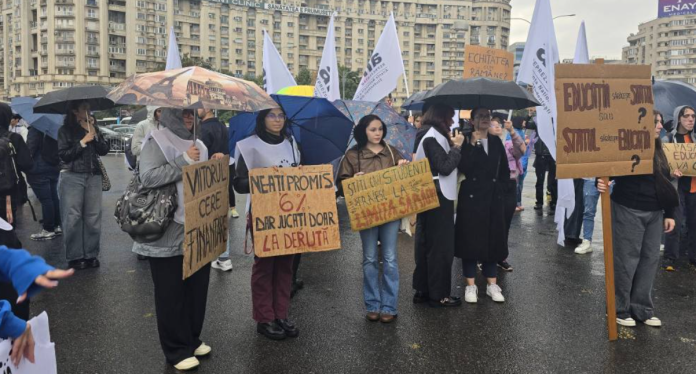 Protestul din Piața Victoriei a început la ora 16:00, cu pancarte inscripționate cu mesaje precum „Educația sărăcește statul sau statul sărăcește educația?”, „Vă pasă de educație până vă costă”, „Ați promis 15% pentru educație” și „Cu studenții fără posibilități, cum rămâne?”.