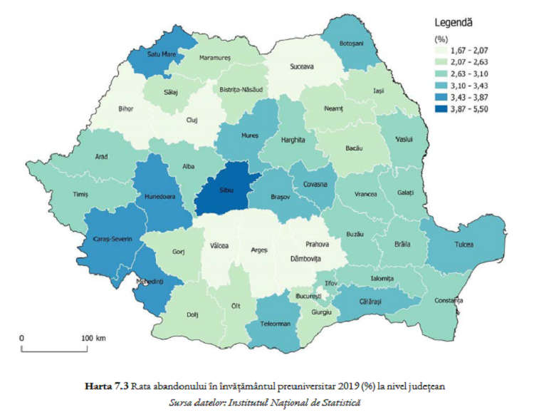 Județul Sibiu este pe primul loc la capitolul abandon școlar în România, relevă un studiu privind disparitățile teritoriale, realizat de către Direcția Politici și Strategie din Ministerul Dezvoltării și citat de Curs de Guvernare.