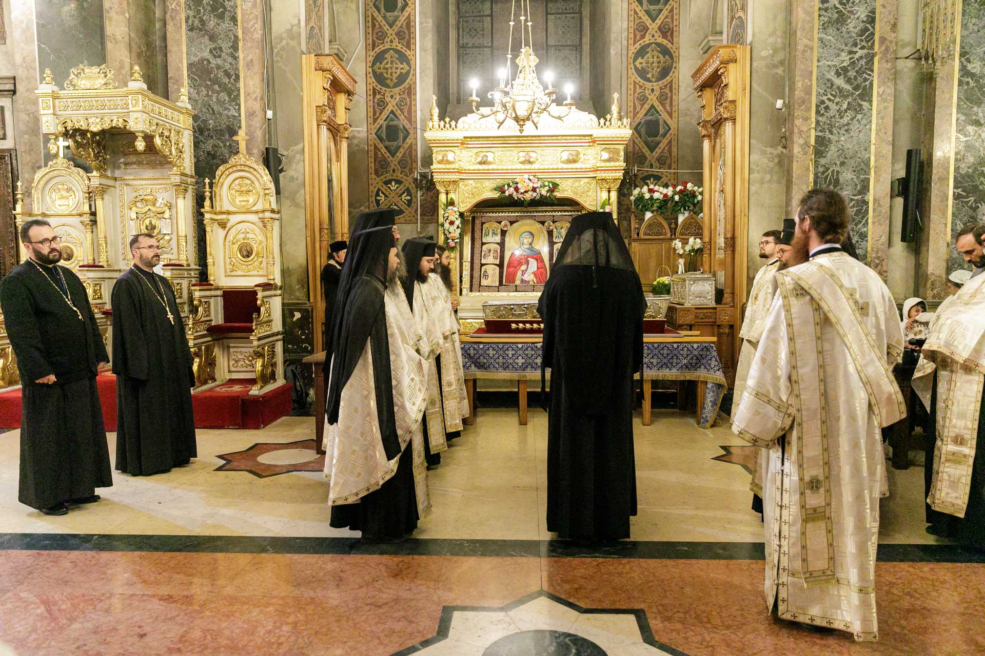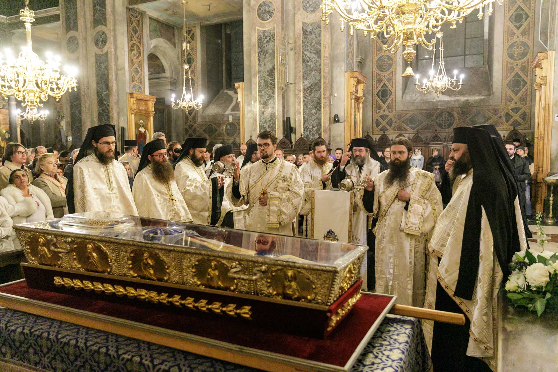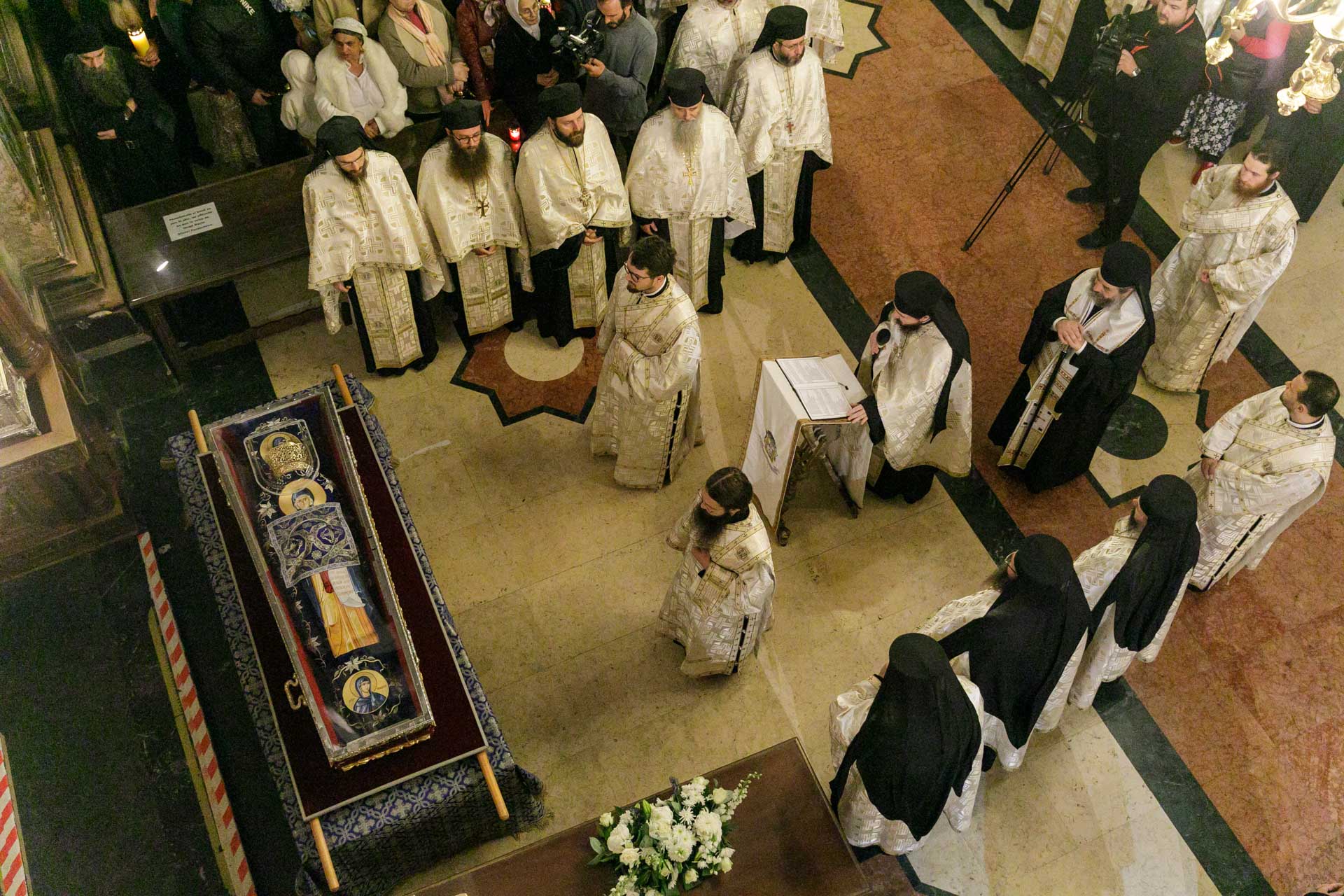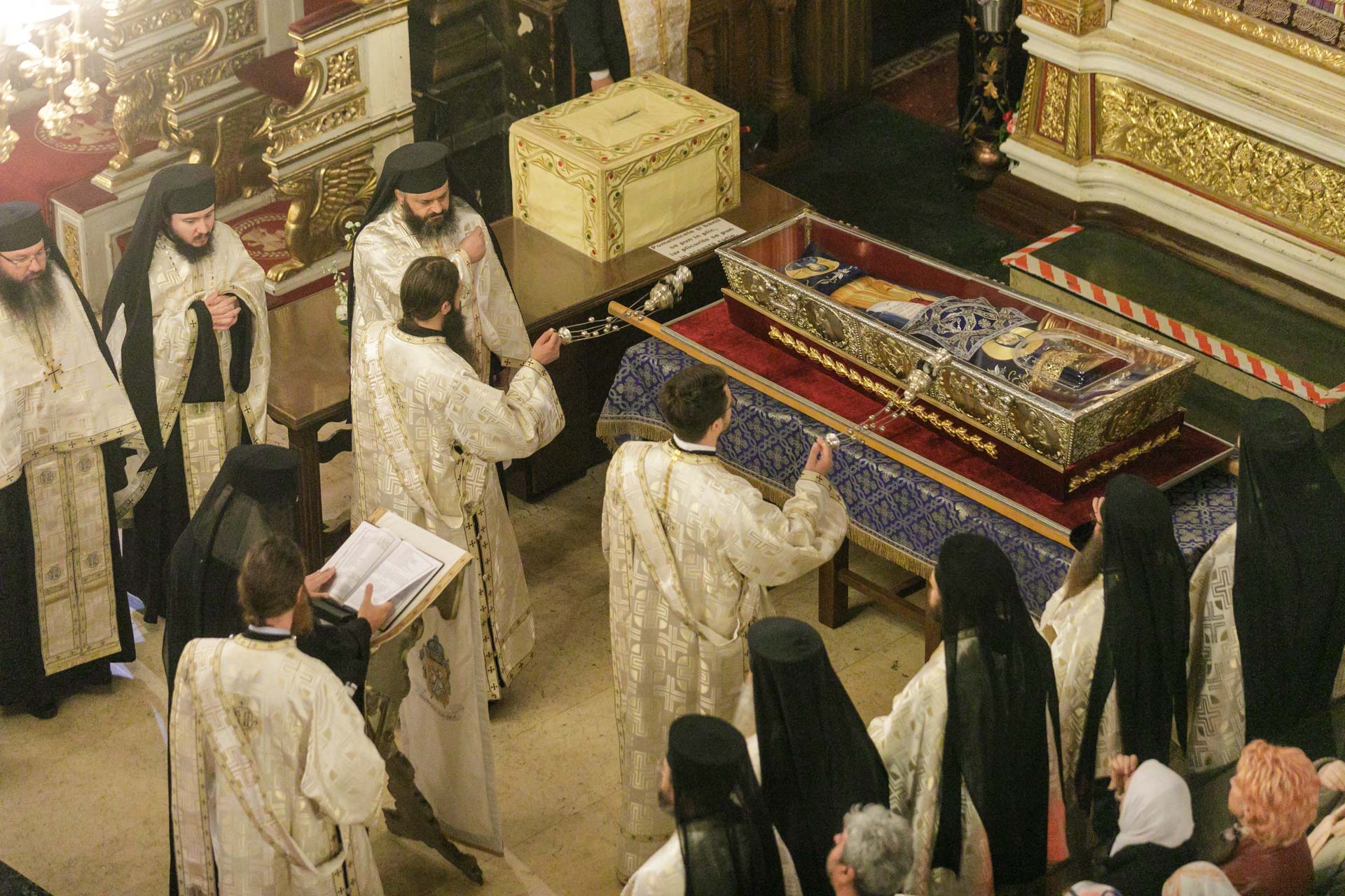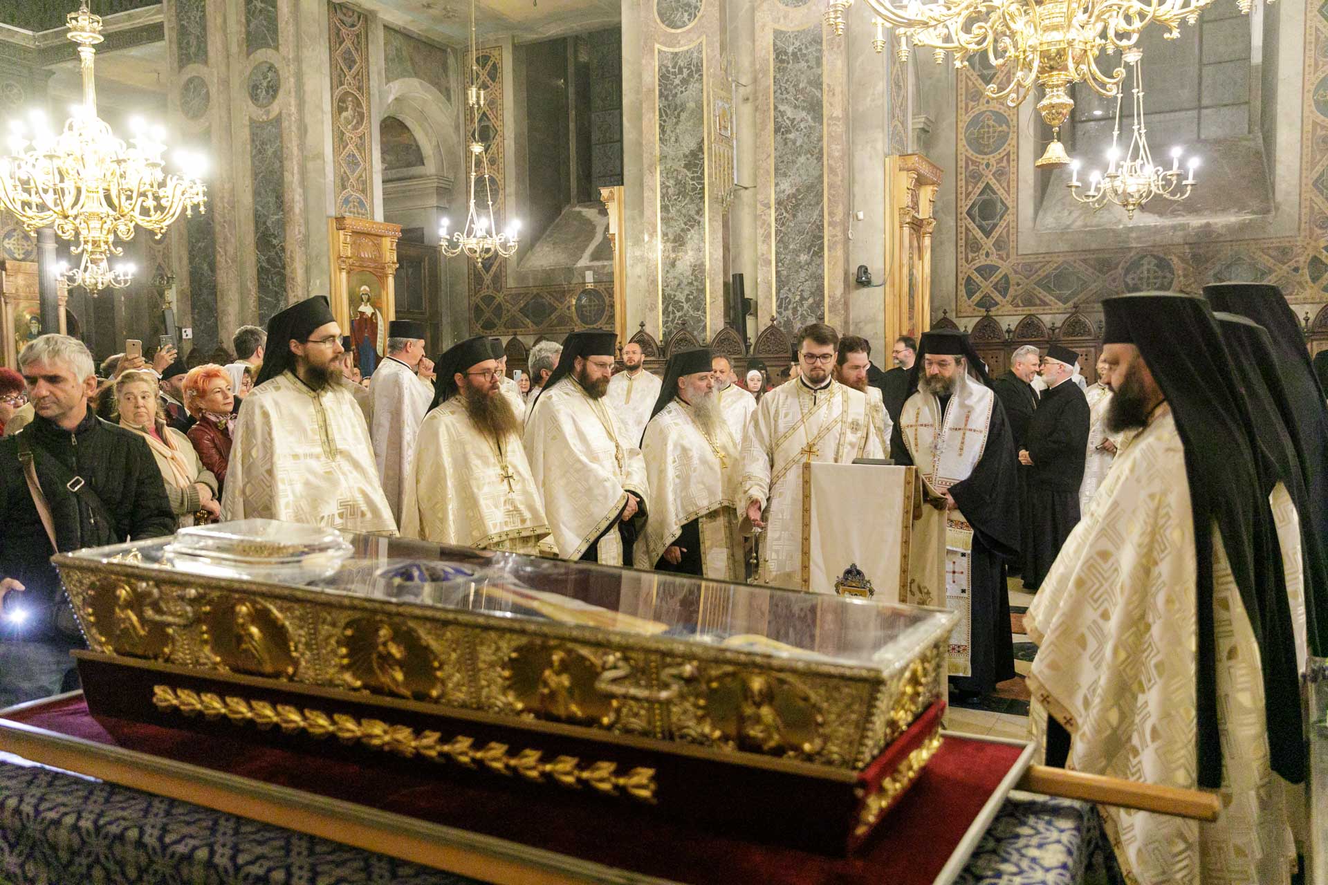 O frumoasă tradiţie păstrată de mulţi ani în istoria Sfintei Cuvioase Parascheva la Iaşi a fost împlinită şi anul acesta, cu prilejul hramului Mitropoliei Moldovei şi Bucovinei. Racla cu moaştele Sfintei a fost purtată pe umeri de un sobor de 32 de preoţi, şi a fost depusă spre închinare miilor de pelerini care sosesc la Iaşi în această perioadă. Anul acesta, ziua de 7 octombrie a reprezentat momentul scoaterii sfintelor moaşte din Catedrala Mitropolitană şi aşezarea lor în baldachinul special amenajat şi împodobit cu flori, situat în faţa Căminului preoţesc „Sfântul Gheorghe”.