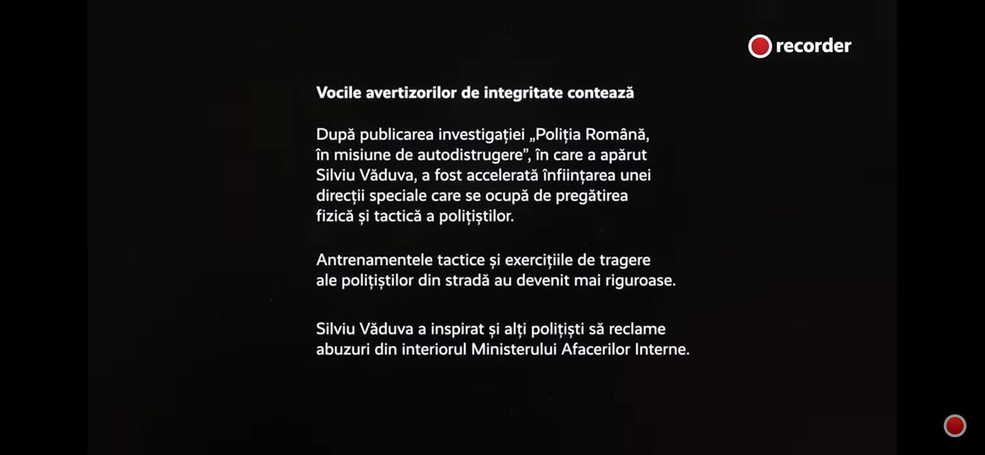„Acum trei zile, pe pagina de Facebook a publicației Recorder apărea un teaser în care ni se spunea că va urma un articol cu titlul “Poliția Română, o instituție în slujba celor puternici.”