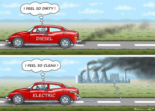Dar efectele poluante ale acestor vehicule sunt exportate sau transferate în altă parte, în minele unde se găsesc metalele necesare pentru baterii, în gropile de gunoi pentru bateriile consumate (cu siguranță locul va fi găsit, mai devreme sau mai târziu, undeva în Africa) și în centralele energetice necesare pentru a furniza electricitatea pentru zeci de milioane de mașini, iar cea mai puțin poluantă sursă de energie – centralele nucleare – a fost în bună măsură abandonată pe motive prudențiale.