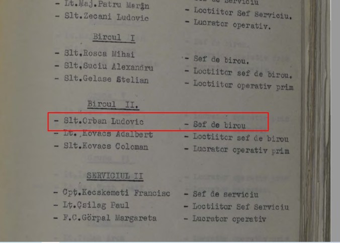 „Imre Orban fost angajat inițial între 1948 – 1950 la Direcția Regională Brașov/Stalin a Securității Statului unde, în 1951 va fi numit locotenent major, în 1954, căpitan și șef serviciu și în 1955 locțiitor șef birou. Imre Orban va fi trecut în rezervă la data de 29 februarie 1956”, a scris Fabian Anton.
