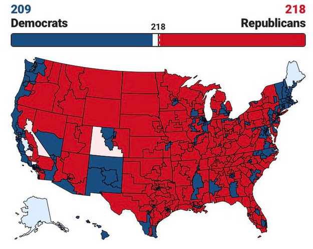 După ce numărătoarea voturilor a durat peste o săptămână, Partidul Republican a câștigat în mod oficial cele 218 de locuri din Cameră necesare pentru a revendica majoritatea după doar patru ani după ce pierduseră puterea. Rezultatele din șapte curse strânse care au mai rămas vor determina dimensiunea finală a unei majorități republicane subțiri, care va fi mult mai restrânsă decât se așteptau liderii de partid.