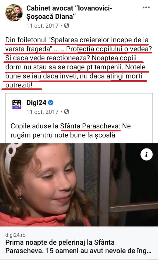Reamintim că Diana Șoșoacă nu a pretins dintotdeauna că era așa de evlavioasă. În 2017, cu doar doi înainte de a se lansa ca „politician creștin”, ea cerea intervenția statului împotriva părinților care-și duc copiii la pelerinajul de Sf. Parascheva. Ea numea sfintele moaște drept „ morți putreziți”.